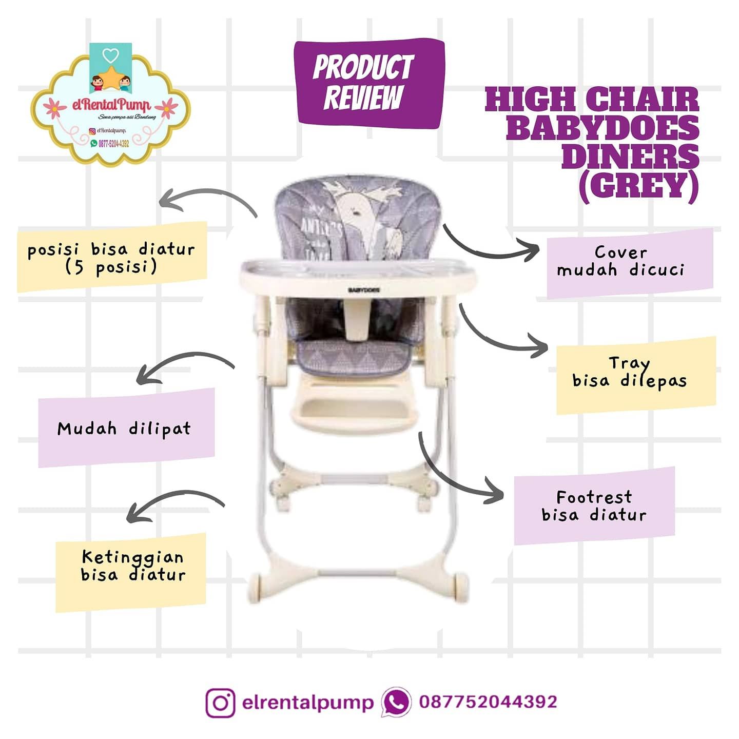 Highchair terbaru dari Babydoes, nyaman digunakan untuk bayi dari baru lahir (new born) sampai anak usia 36 bulan.