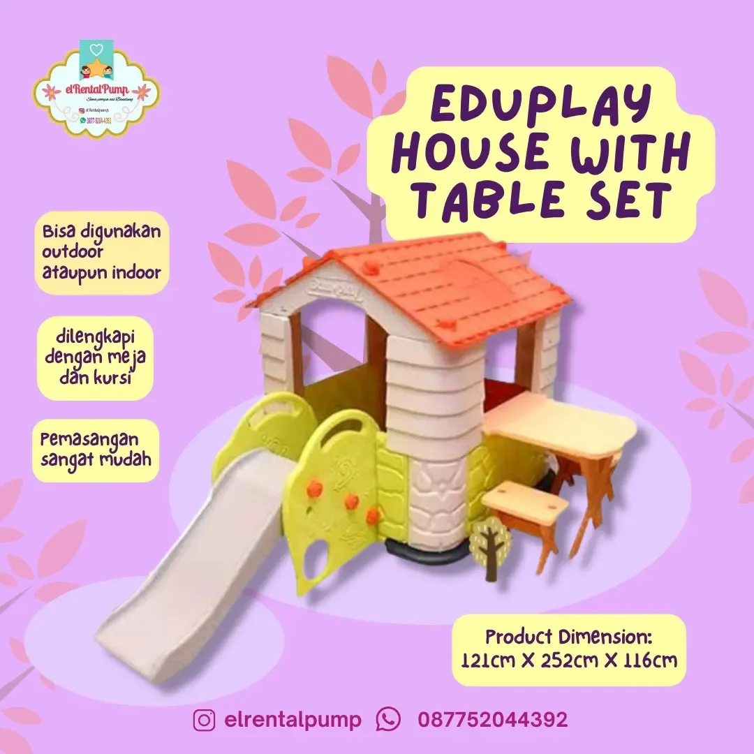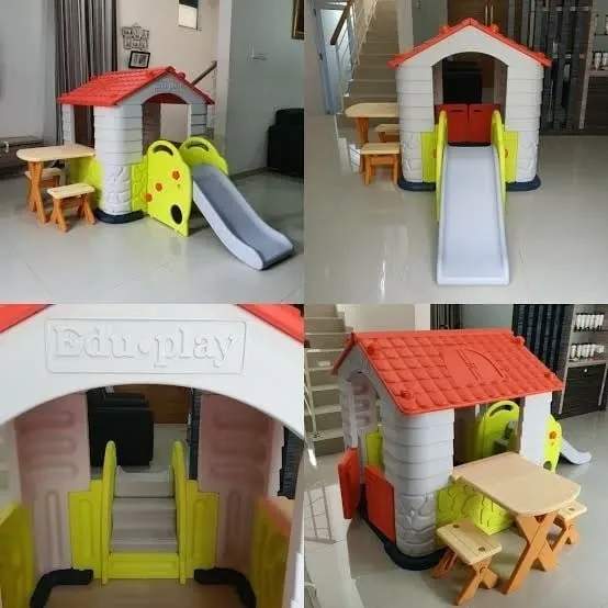 Eduplay Playhouse 4 With Slide And Table Set Detail Produk & Spesifikasi : ā Set berisi perosotan , rumah-rumahan dan table set