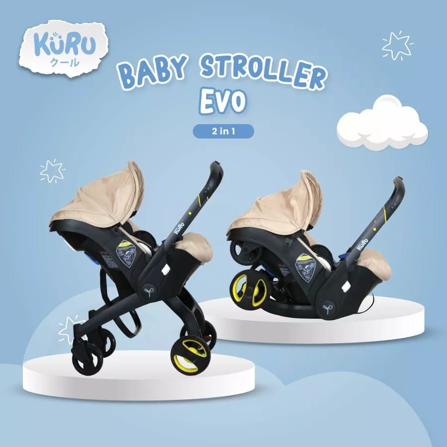 Kuru Baby Evo stroller, memiliki mode carseat dan stroller yang memudahkan kita saat berpergian