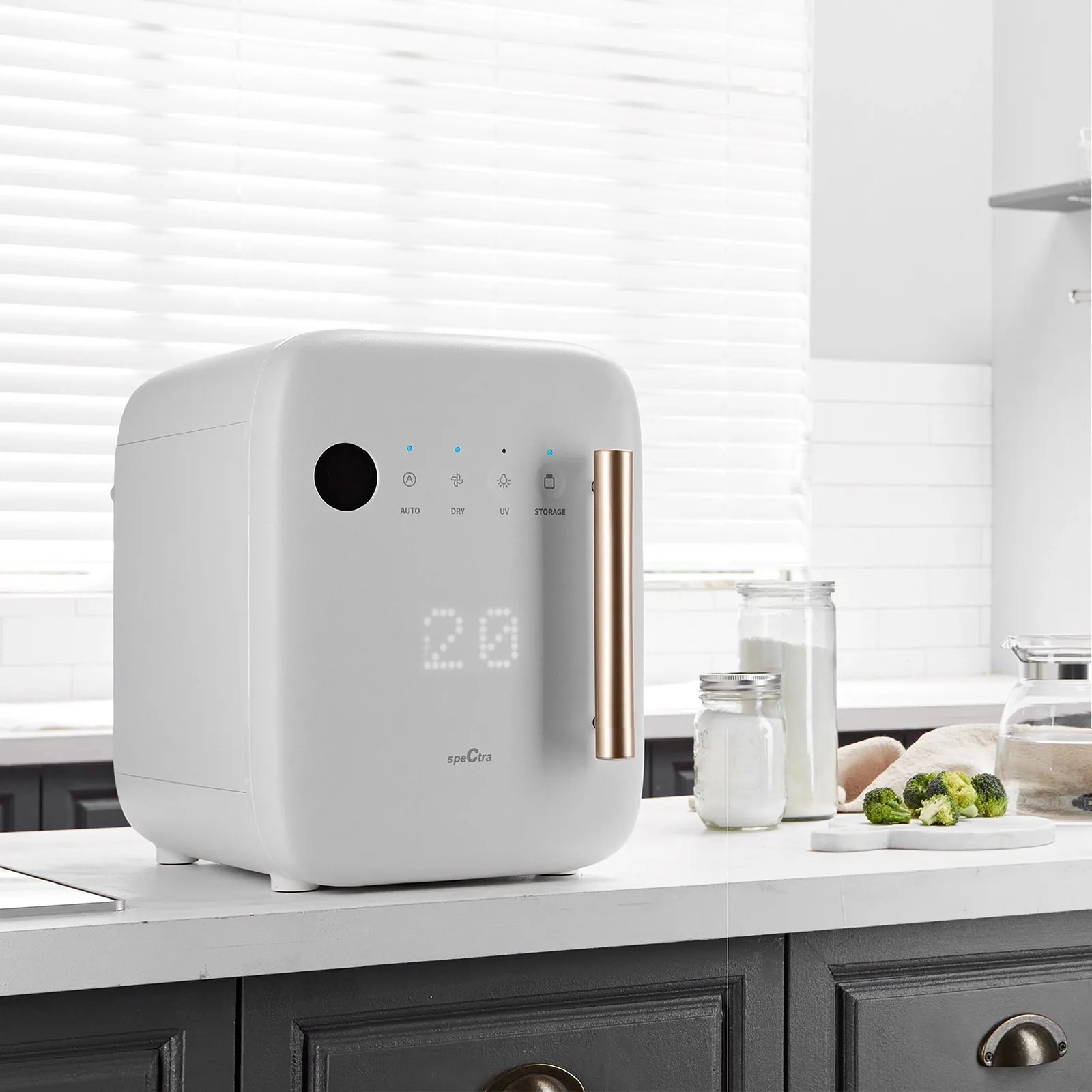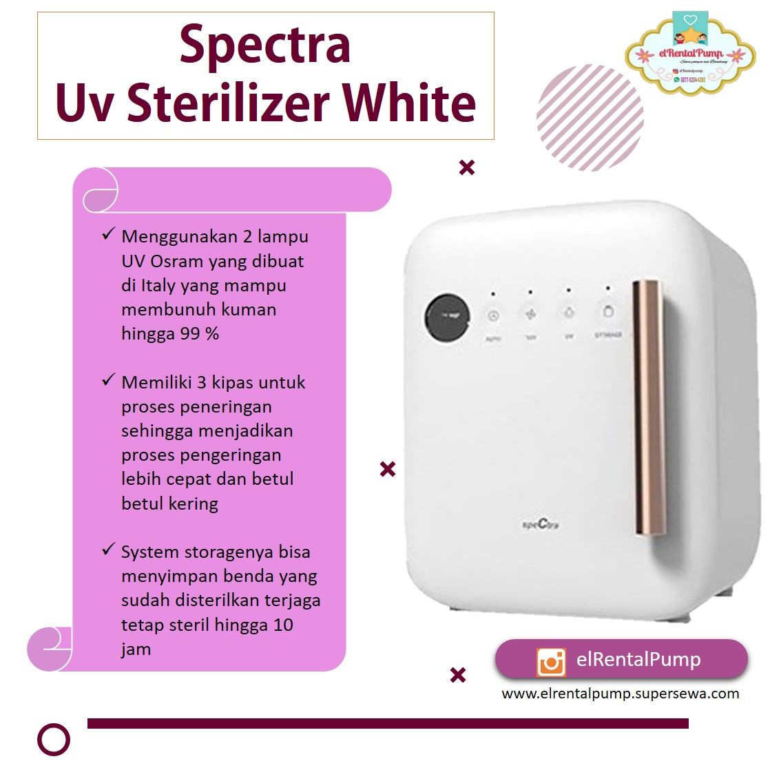 Spectra UV Sterilizer menggunakan 2 lampu UV Osram yang dibuat di Italy mampu membunuh kuman hingga 99.9%.